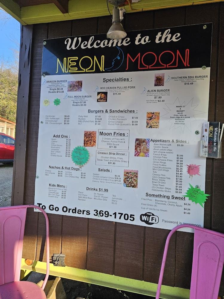Welcome to Neon Moon, a vibrant burger restaurant located at 326 Hwy 71 SE, Mountainburg, AR. Our menu features local specialties, perfect for a quick bite or a leisurely meal, whether you’re dining solo or with family. Enjoy our relaxed, trendy atmosphere with outdoor seating and accessible facilities for everyone. We cater to various tastes, including vegetarian options and shareable small plates. Our efficient service ensures you have a pleasant dining experience, whether you choose to dine in, take out, or have it delivered. Join us for lunch or dinner and savor delicious flavors at Neon Moon!